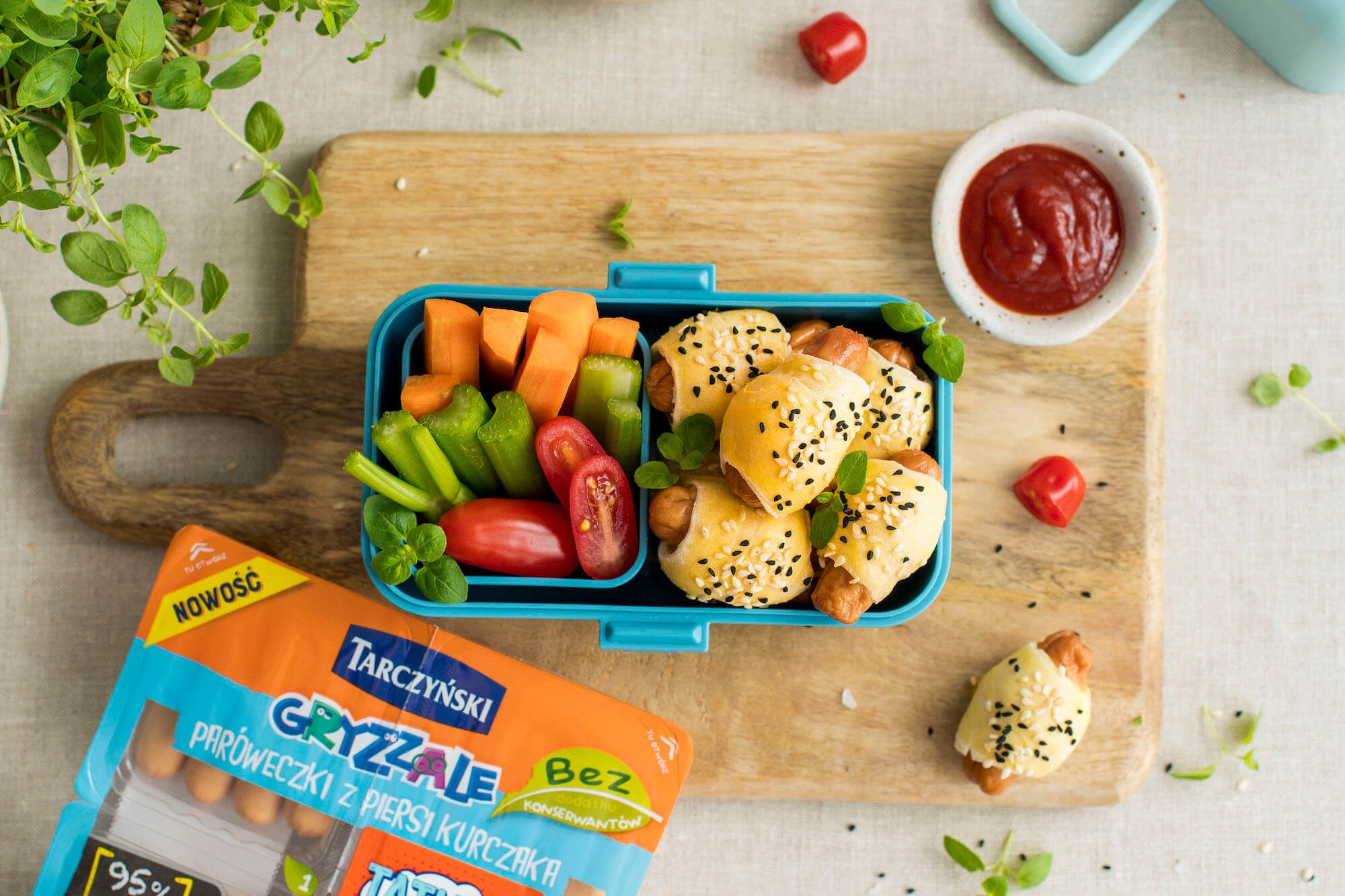 Możesz podawać z ketchupem lub ulubionym sosem. Parówki w cieście będą doskonale komponowały się również z sałatką ze świeżych warzyw.